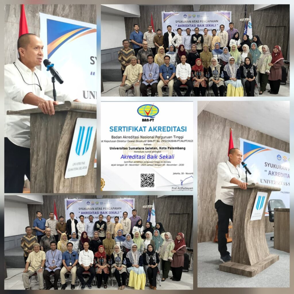 Palembang, 22 November 2025 — Universitas Sumatera Selatan (USS) menyelenggarakan acara syukuran atas capaian Akreditasi Institusi Perguruan Tinggi (AIPT) Baik Sekali yang diterima pada tahun 2025. Kegiatan ini digelar di Aula Prof. Dr. H. Mahyuddin, NS., Sp.OG(K), Kampus A USS, sebagai bentuk rasa syukur dan apresiasi atas kerja kolektif seluruh sivitas akademika. Acara syukuran dihadiri […]