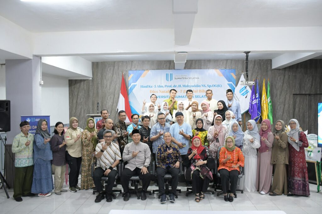 Palembang — Keluarga besar Universitas Sumatera Selatan (USS) menggelar rangkaian kegiatan penuh makna yang meliputi Haul ke-5 Almarhum Prof. dr. H. Mahyuddin NS, Sp.OG(K), Dies Natalis ke-7, serta Halal Bihalal pada Kamis 9 April 2026. Kegiatan yang berlangsung di Aula Prof. Mahyuddin ini berjalan khidmat sekaligus penuh kehangatan, menjadi momentum refleksi dan mempererat silaturahmi antar civitas akademika.