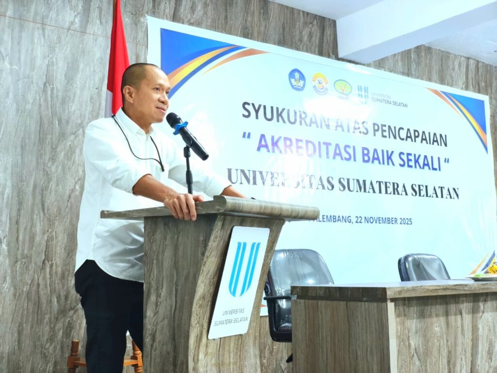 Palembang, 22 November 2025 — Universitas Sumatera Selatan (USS) menyelenggarakan acara syukuran atas capaian Akreditasi Institusi Perguruan Tinggi (AIPT) Baik Sekali yang diterima pada tahun 2025. Kegiatan ini digelar di Aula Prof. Dr. H. Mahyuddin, NS., Sp.OG(K), Kampus A USS, sebagai bentuk rasa syukur dan apresiasi atas kerja kolektif seluruh sivitas akademika.