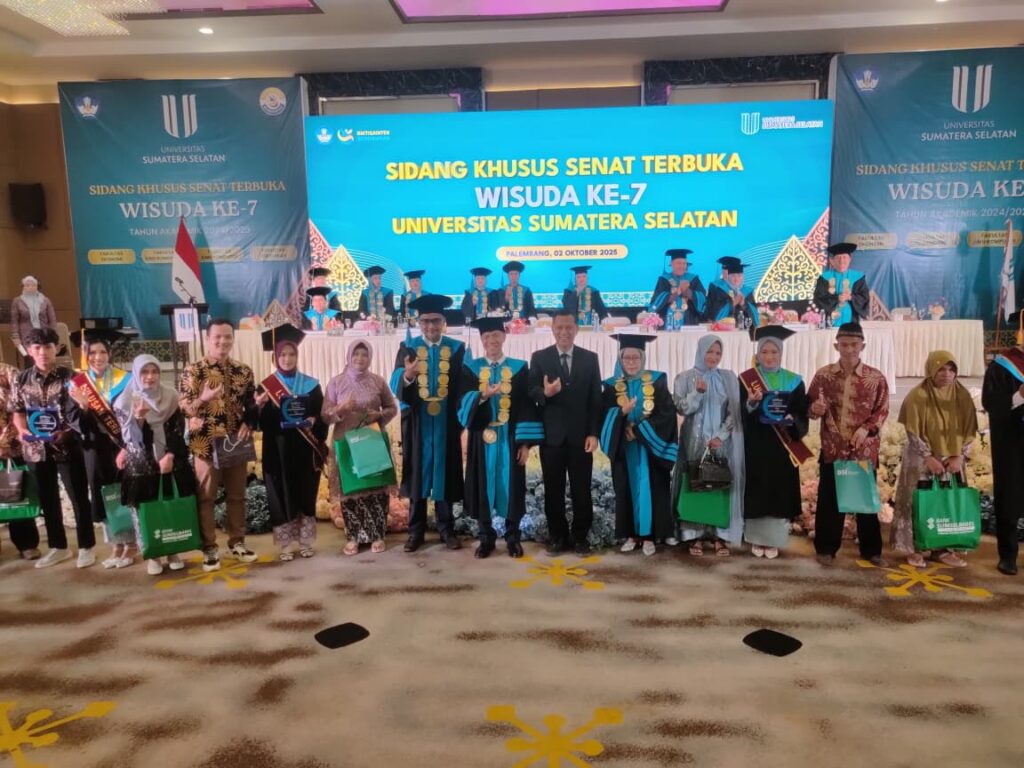 Palembang, 2 Oktober 2025 — Universitas Sumatera Selatan (USS) pada Kamis pagi (2/10/2025) melaksanakan Wisuda ke-7 di Gedung Golden Sriwijaya, kawasan Jakabaring, Palembang. Kegiatan ini menandai babak penting perjalanan sebuah perguruan tinggi yang masih muda, sekaligus kebahagiaan besar bagi 111 mahasiswa yang kini resmi bergelar sarjana.